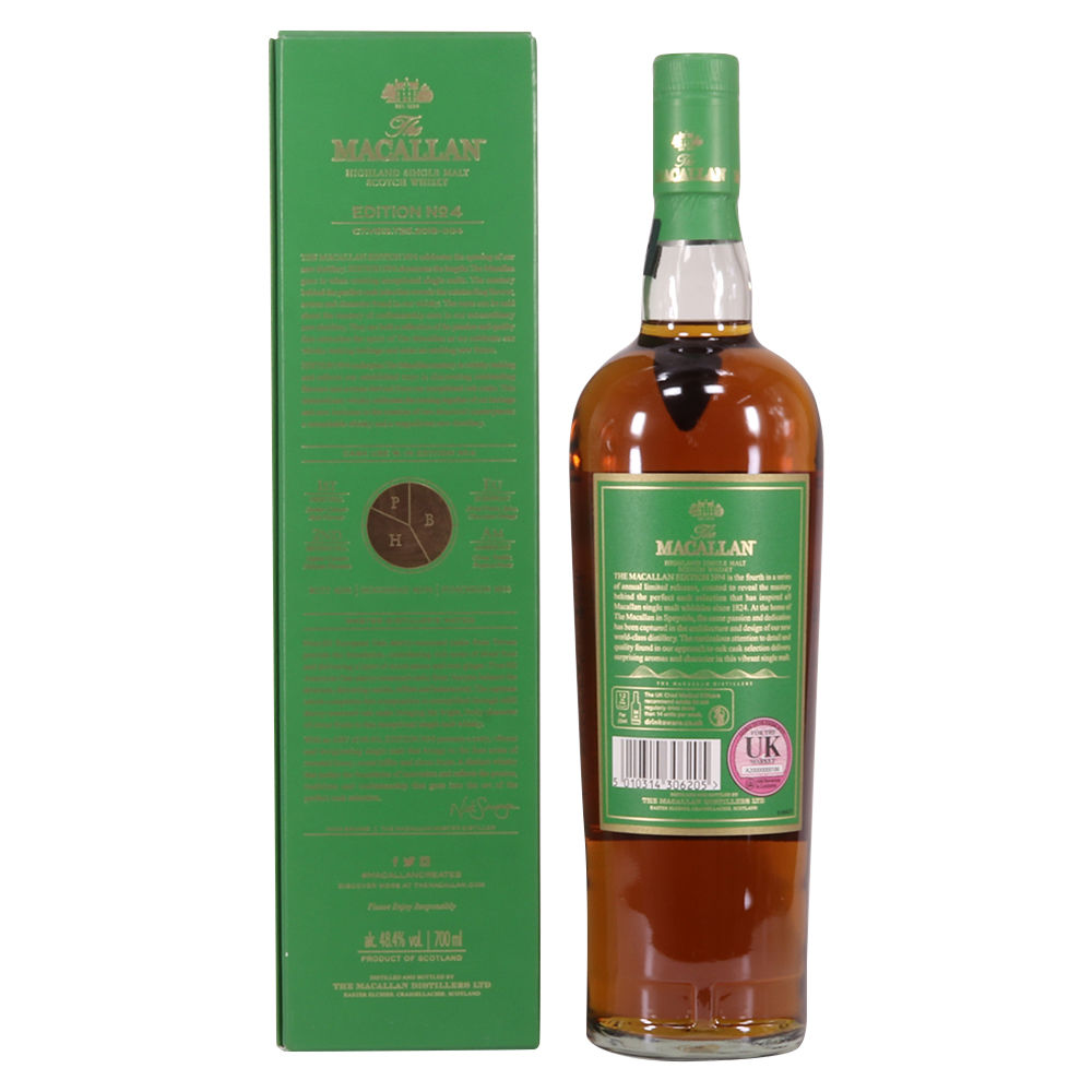 The fourth release in the Edition Series from The Macallan, this Speyside single malt is a celebration of the distillery's whisky making heritage, combining a unique selection of oak cask styles. Edition No.4 reflects the craftsmanship and pioneering design of the new Macallan Distillery.
