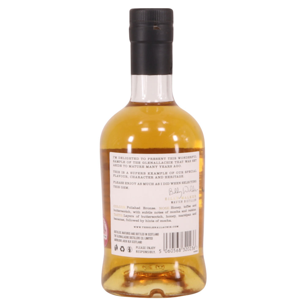 This is a 50cl bottling of 12 year old single malt from GlenAllachie Distillery. It was bottled in April 2018 for the Spirit of Speyside Whisky Festival 2018, from cask No.897. This bottle is signed by Master Distiller, Billy Walker.