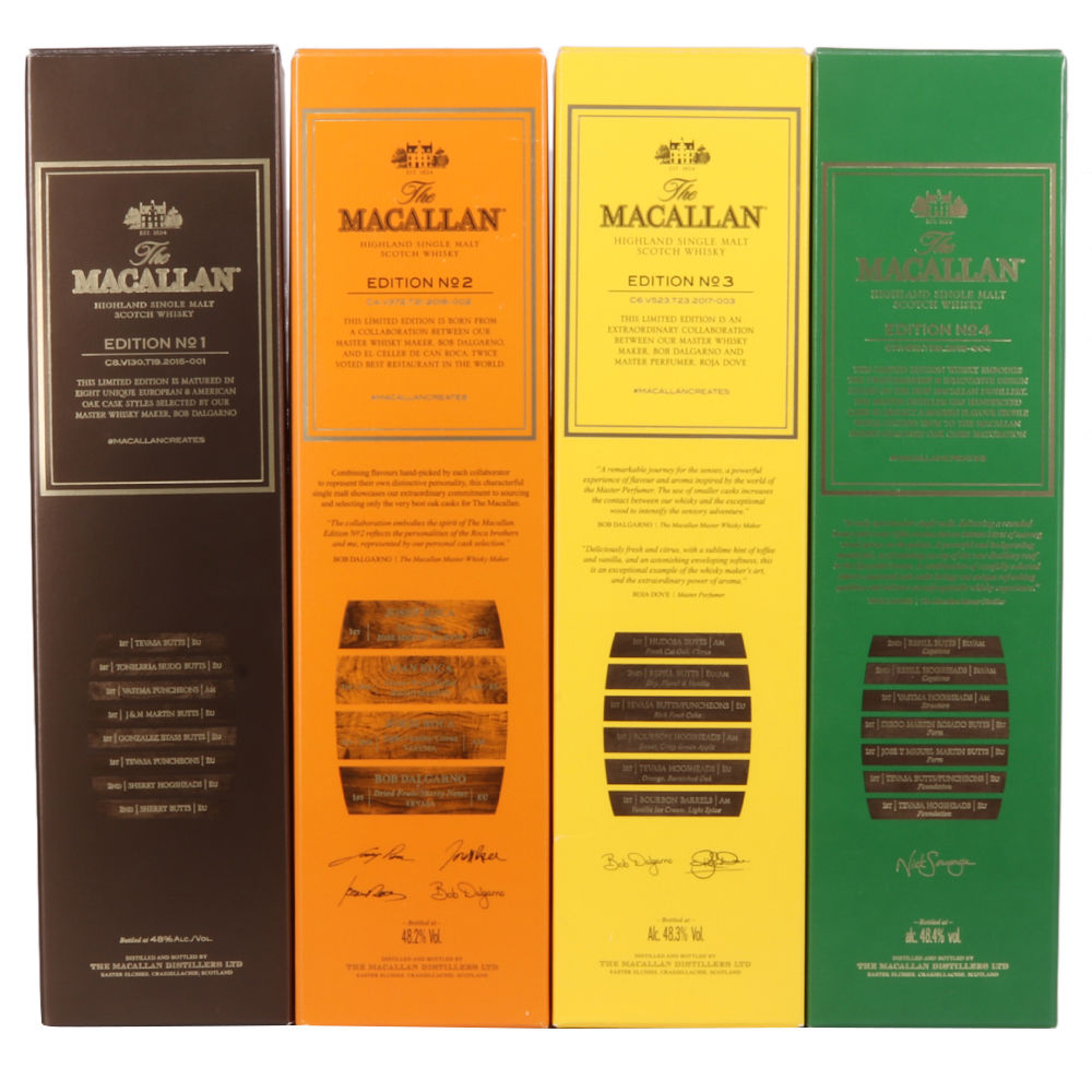 This lot brings together the Macallan Edition set comprising of Edition no. 1, 2, 3 and 4 in the annual limited edition series.