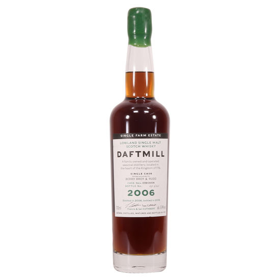 Daftmill is grown, distilled, matured and bottled in the Kingdom of Fife. Bottled exclusively for Berry Bros & Rudd in 2019 this lowland whisky is quite possibly their most sought after expression yet. Only 621 bottles have been produced by the Cuthbert family. When not distillingFrancis Cuthbert looks after the estate, growing the malting barley used to make this beautiful malt. This is a first fill sherry butt and one of only two sherry butts filled in 2006 by Daftmill.