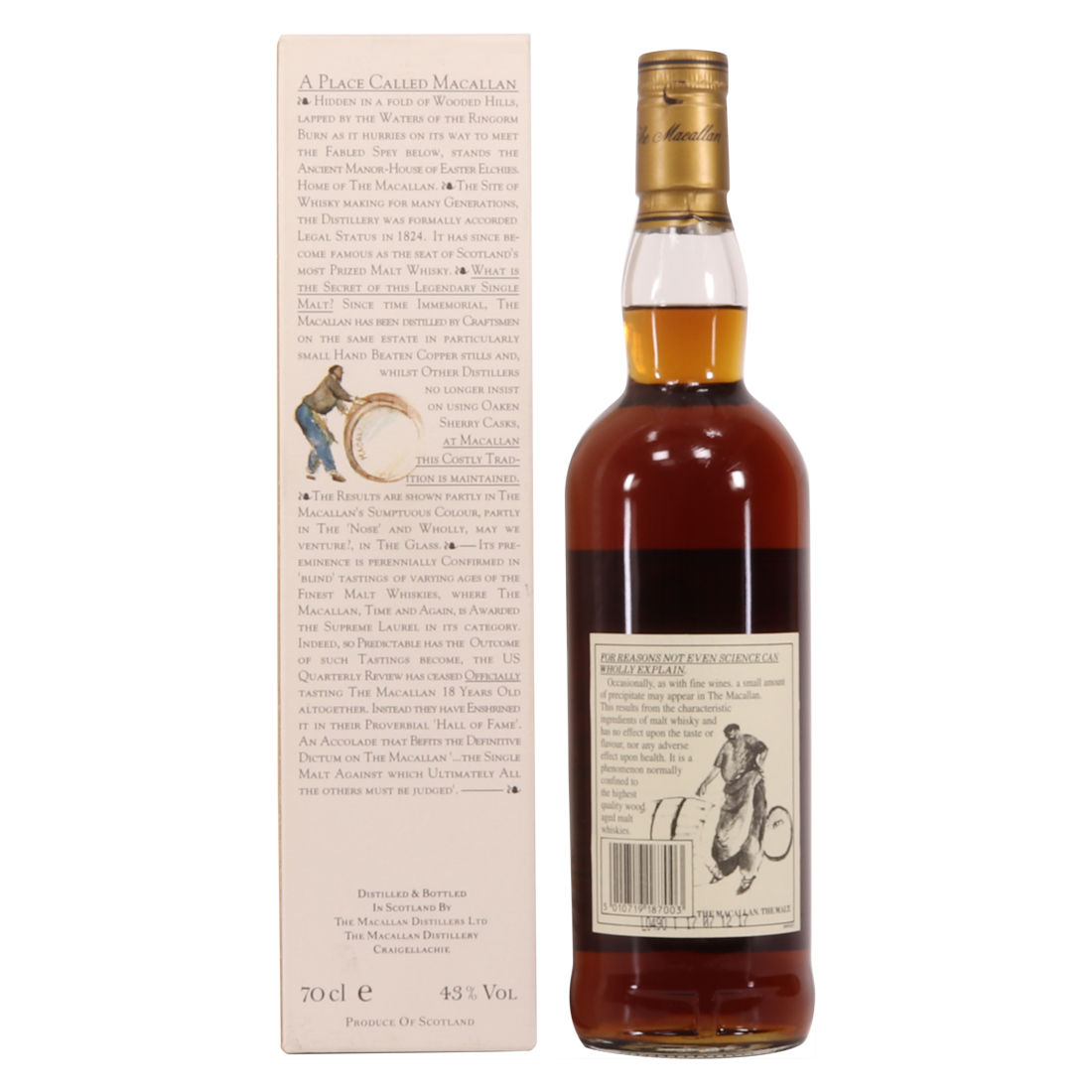 Macallan 18 year old, distilled in 1980 was matured in Sherry wood casks at the heart of Speyside - Easter Elchies House. It was later bottled in 1999.