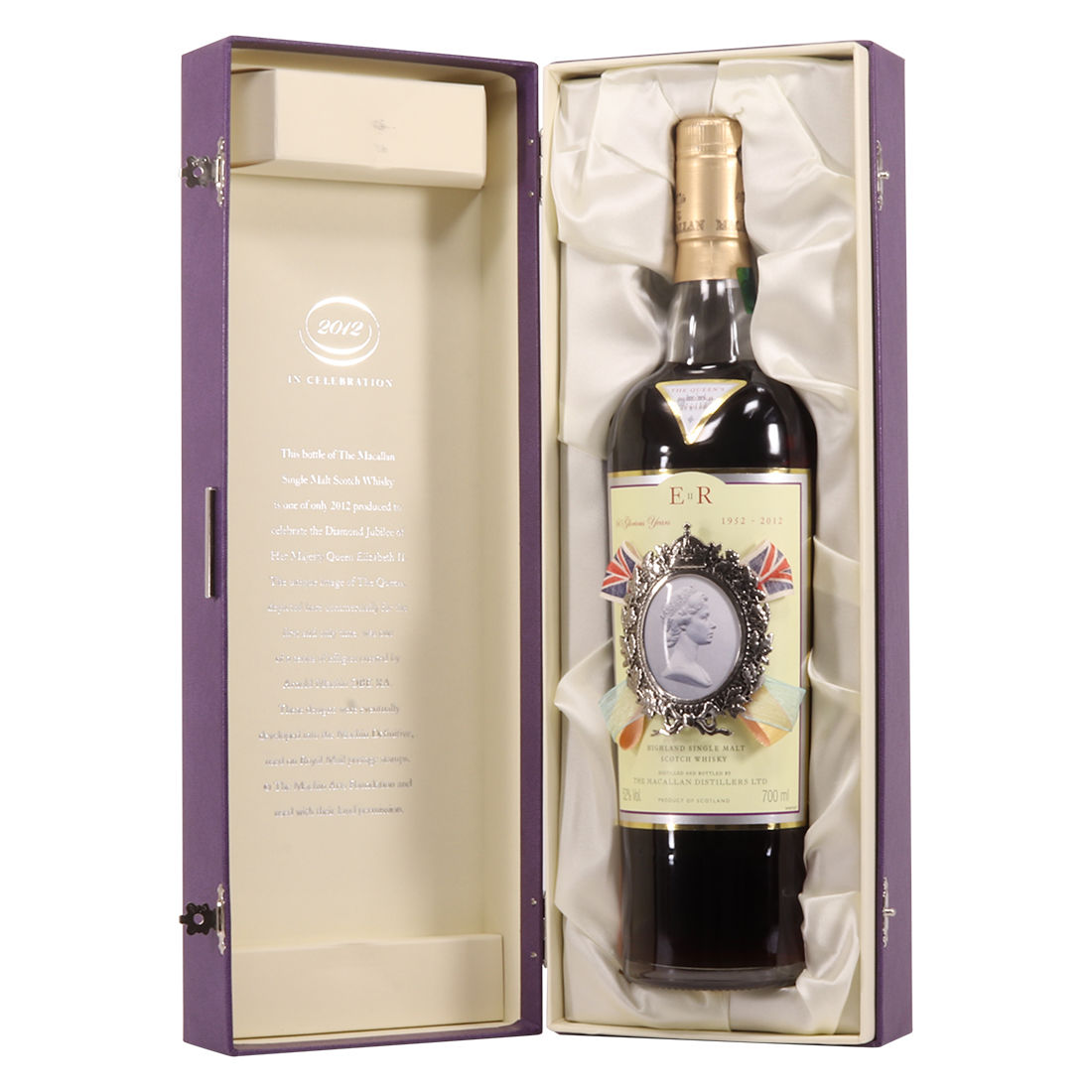 A highly desirable, limited-edition release from Macallan to commemorate the Golden Jubilee of Her Majesty Queen Elizabeth II (1952-2012). This is one of 2012 bottles. Drawn from its cask on the 8th of February 2012, by no coincidence the date of Her Majesty’s accession, This sherry cask-matured expression was bottled at 52% ABV. It is an instant classic and highly collectable.