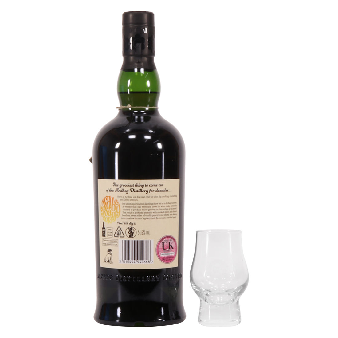 This lot comes with a branded Ardbeg tasting glass.