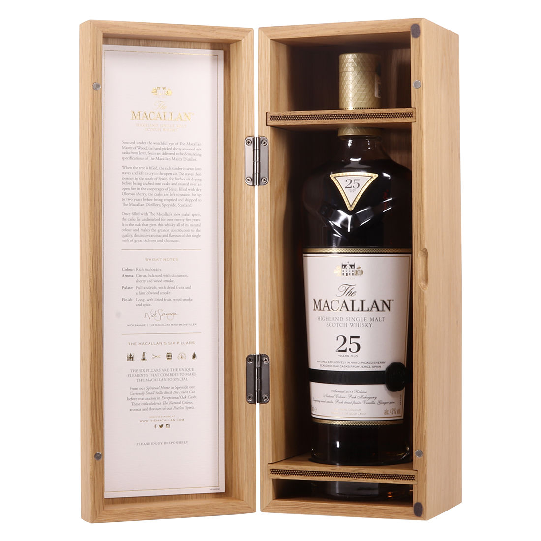The Macallan 25 Year Old Sherry Oak 2018 release is part of Macallan's super popular Sherry Oak range. This 25 year old has been matured exclusively in hand-picked, sherry seasoned oak casks from Jerez, Spain.