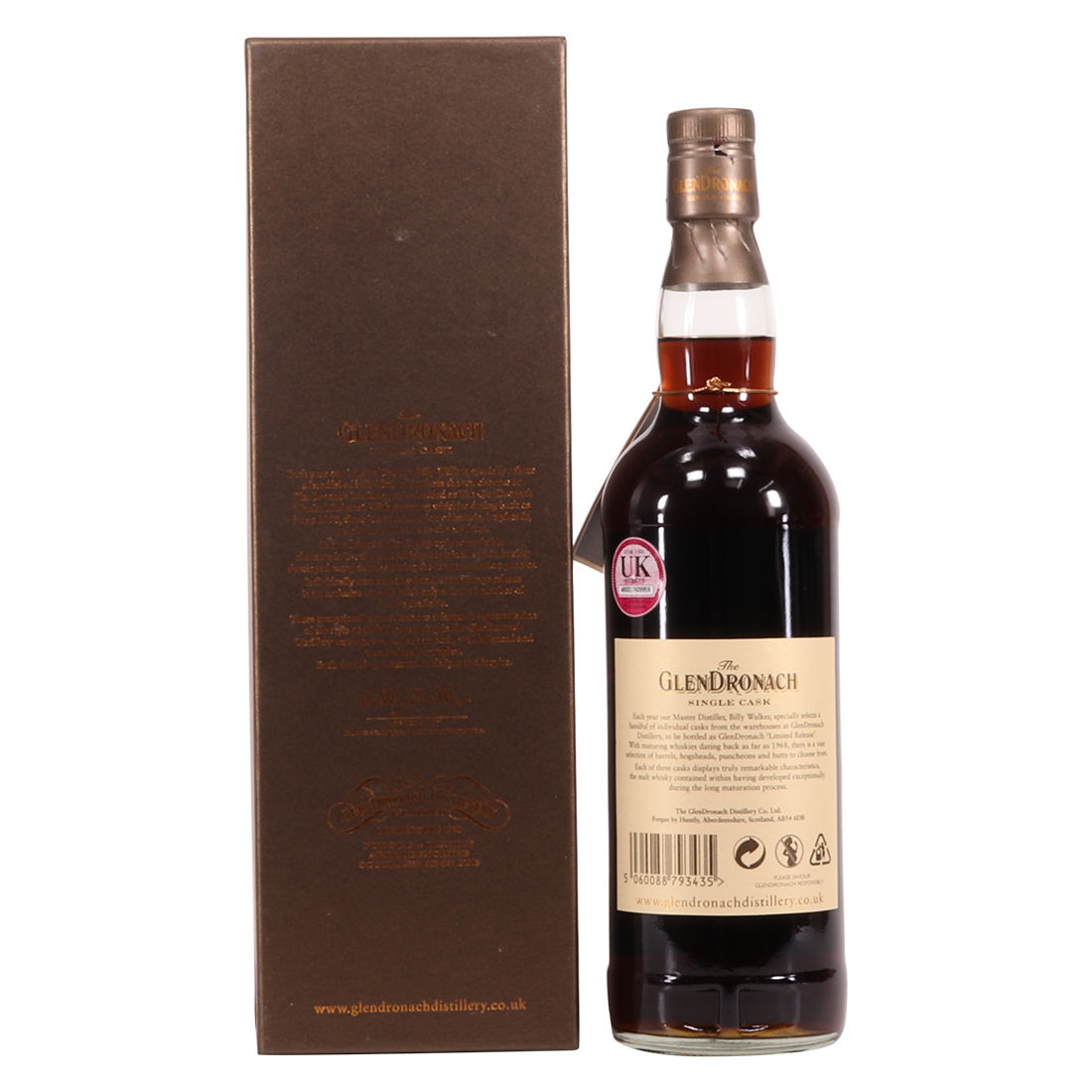 This 19 year old Glendronach single malt was exclusively matured in Oloroso Sherry Butt no. 161. It was released in 2011, as part of Glendronach's 4th set of single cask releases. This is one of 500 individually numbered bottles.