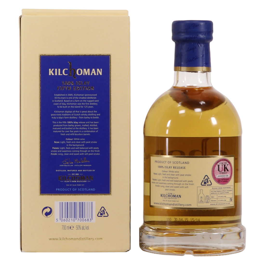 This is the 5th edition of Kilchoman's very popular 100% Islay series, released in 2015 - the year of Kilchoman's 10th anniversary. This is a lightly peated single malt Scotch whisky (even compared with their Machir Bay and Loch Gorm), made with barley which was grown on Islay. It was distilled by Kilchoman and matured in a mixture of fresh and refill bourbon barrels, filled in 2009 and 2010. It was bottled without chill-filtration or additional colours.