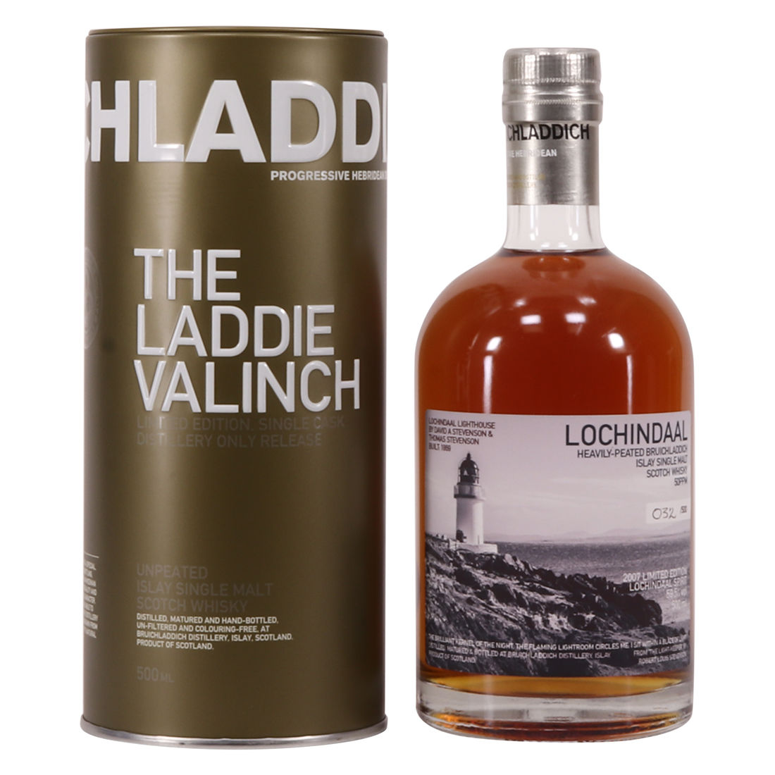 Lochindaal is a 2007 vintage Bruichladdich released during the week of the 2015 Fèis Ìle. It was bottled at the heavily peated at 50PPM and at 59.5% ABV. This is one of just 500 individually numbered bottles. It is named after Lochindaal Lighthouse, which was built by David & Thomas Stevenson in 1869. The lighthouse is located just outside the village of Port Charlotte, Islay.