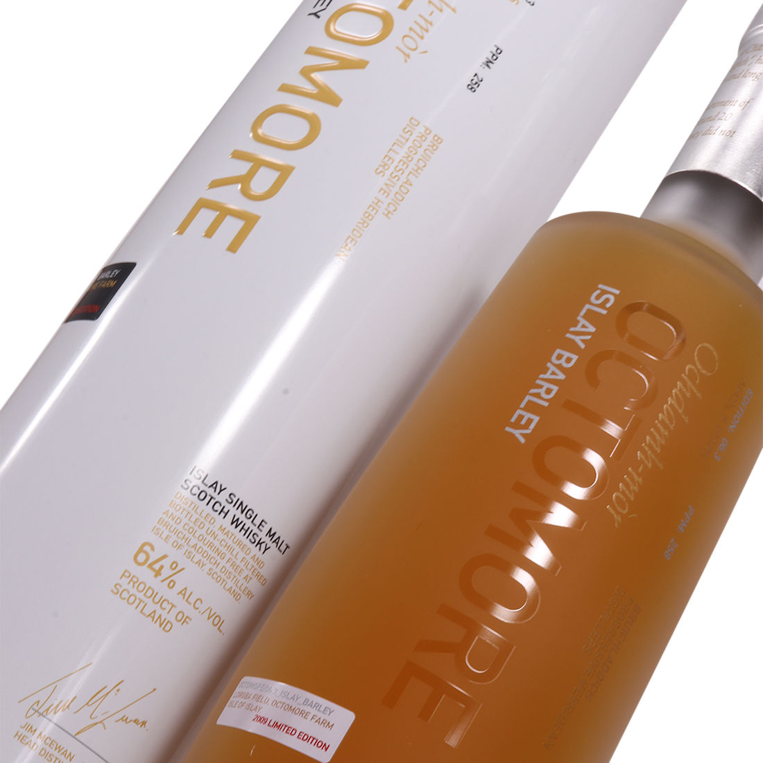 Released in 2014, Octomore 06.3 Islay Barley was made with barley grown on Islay from 'Lorgba' field on Octomore Farm. This limited edition 2009, is true to the character of Bruichladdich's Octomore expressions - it is very heavily peated with 258 PPM. It is a very flavoursome 5 year old single malt, created with depth, elegance and a tasty dose of peat!