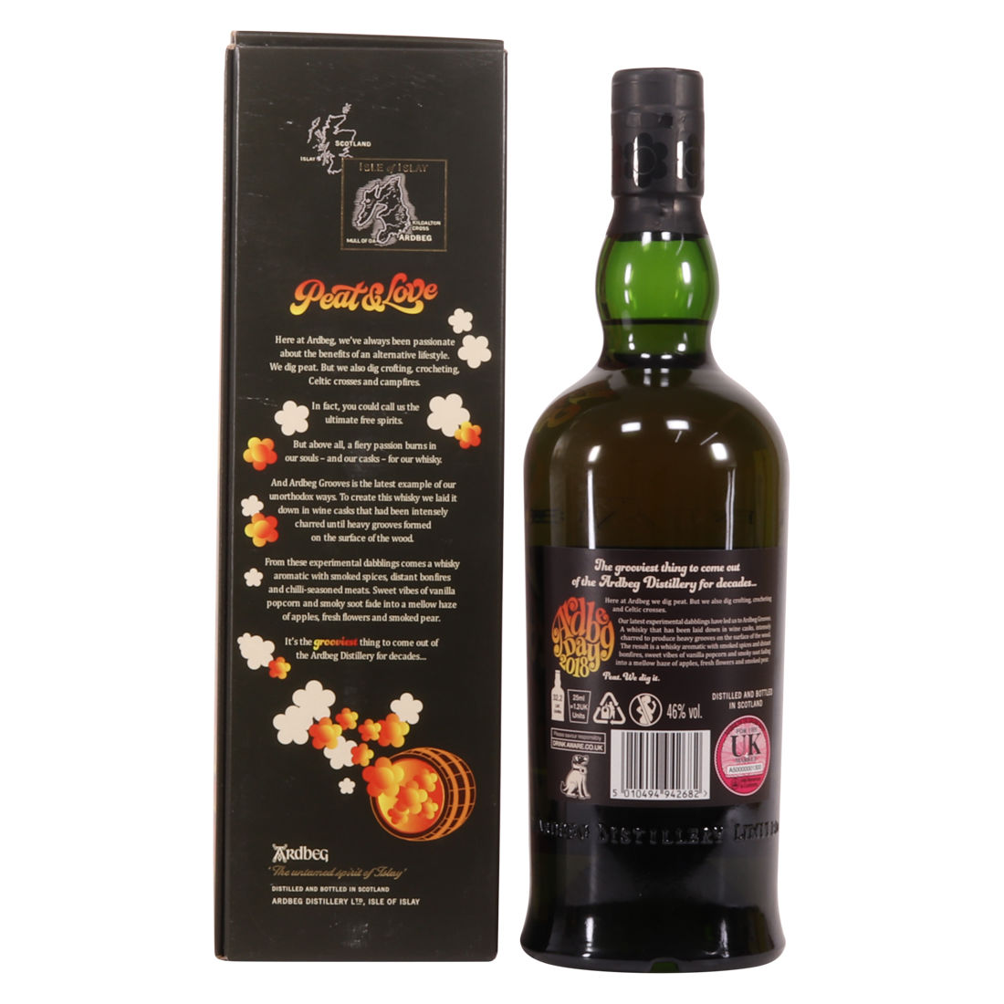 This limited edition Islay single malt was released to mark the 2018 Ardbeg Day at the Islay Festival of Music & Malt. The theme is a throwback to the Island's 1960s spirit, embodying the ideals of 'peat & love'! Ardbeg Grooves is crafted with ex-wine casks that are re-charred to create heavy grooves in the wood, allowing more interaction with the spirit and creating a richer flavour.