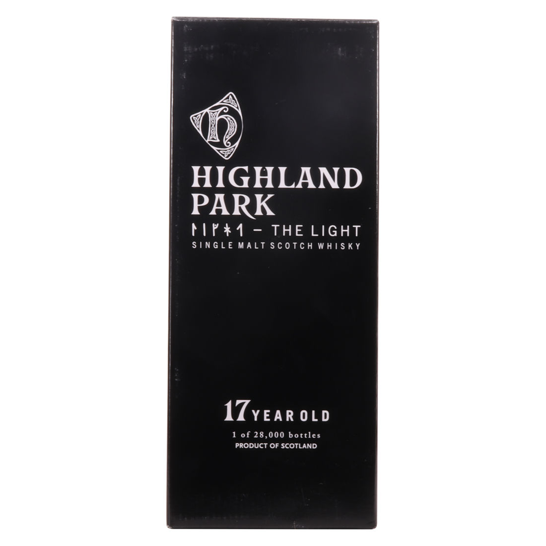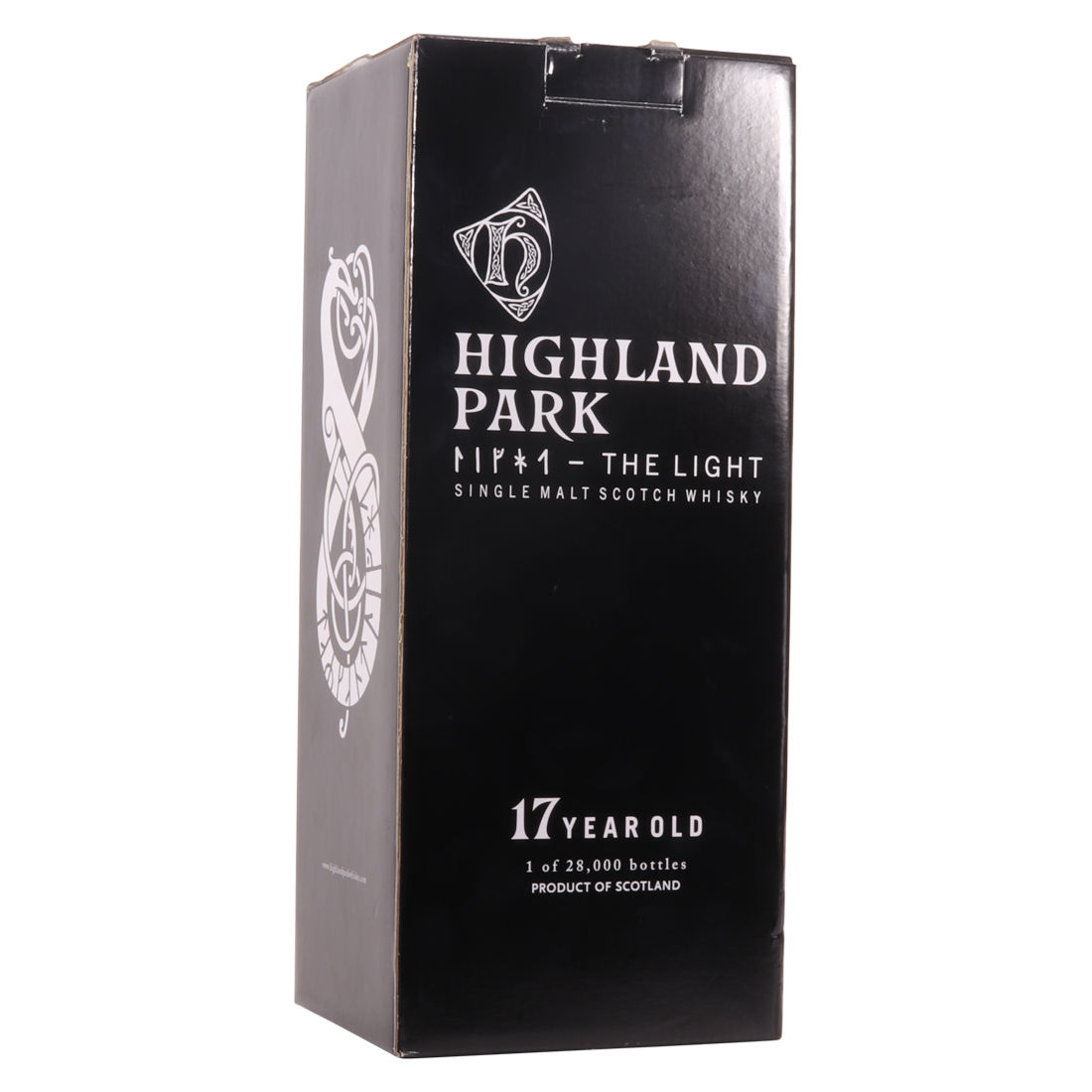 Highland Park 'The Light' is a 17 year old single malt inspired by spring and summer on Orkney, released in 2018. It is the follow up to the Highland Park 2017 release in the series - 'The Dark'. The Light is a fresh and zesty Highland Park expression, that has been matured in refill American oak casks giving it notes of pear, vanilla and soft spice.
