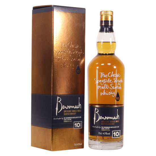 This is a 10 year old single malt from Gordon & MacPhail's Benromach Distillery. It was matured for the first nine years in 4/5 ex-bourbon and 1/5 ex-sherry casks and married for the tenth year in sherry casks.