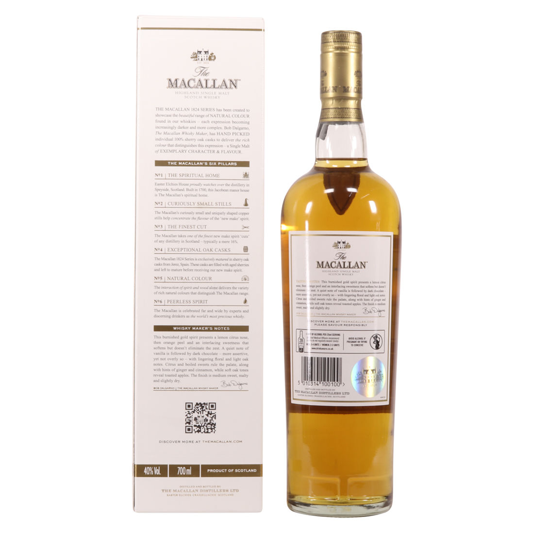 The Macallan 1824 Series celebrates natural colour. The most distinctive and defining characteristic of Macallan is the sherry-seasoned oak casks that are used to mature the whisky. This series shows commitment to 100% natural colour, drawn from wood. The colour of each expression becomes deeper as the range progresses.