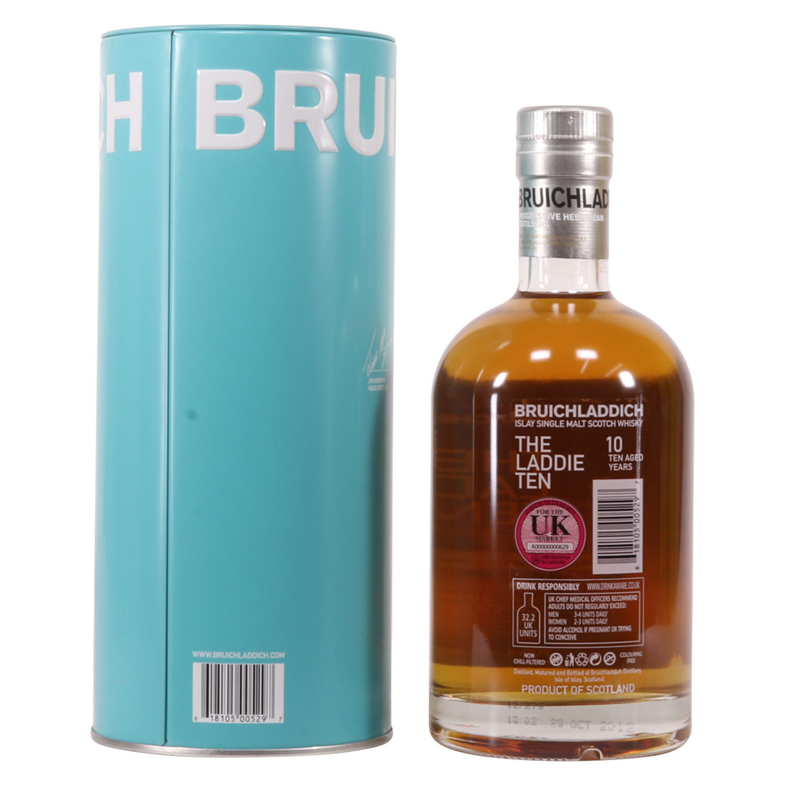 This 10 year old Islay single malt from Bruichladdich comes complete with presentation tin tube.