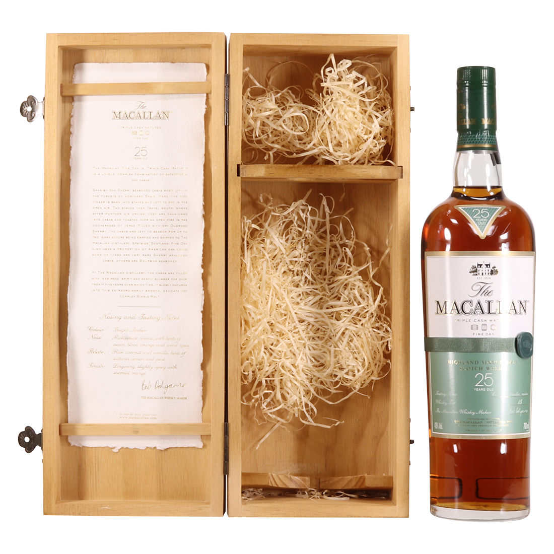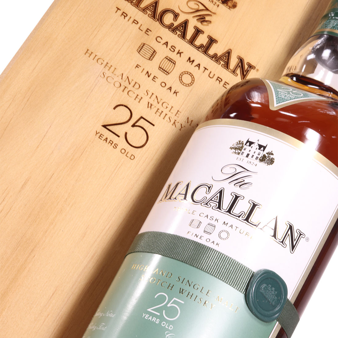 Macallan 25 Year Old Fine Oak from Macallan is matured in a combination of bourbon and sherry casks.