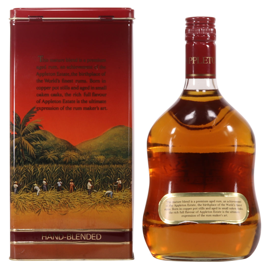 This is a vintage (1992) Appleton Estate Jamaica Rum, lithographed tin with hinged lid. The rum was distilled, hand blended and bottled in Jamaica. The tin was manufactured in England.