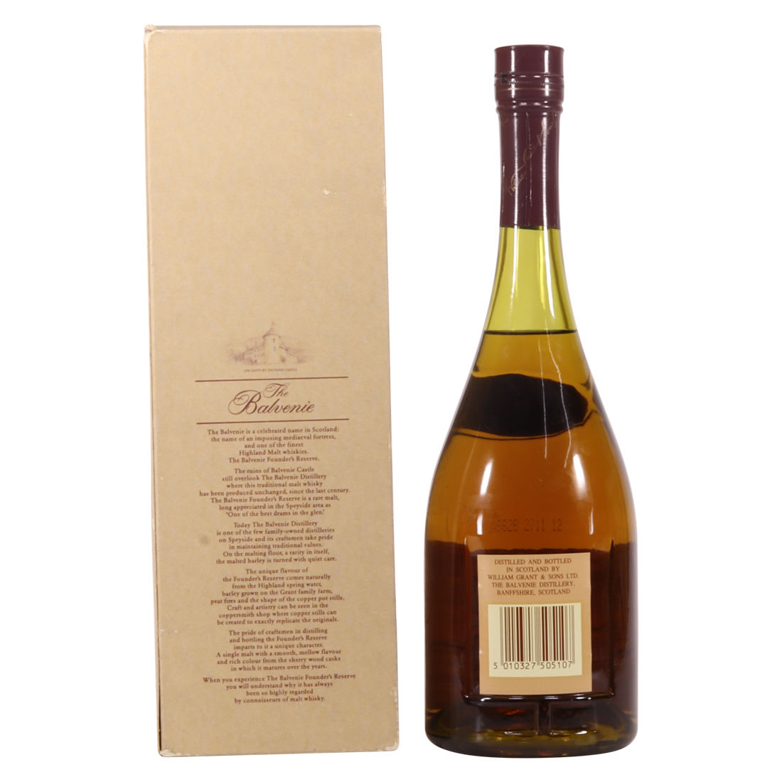 This bottle is the same shape for cognac and has been long since discontinued making it a collectable item. This 10-year-old from Speyside was labelled the founder's reserve.
