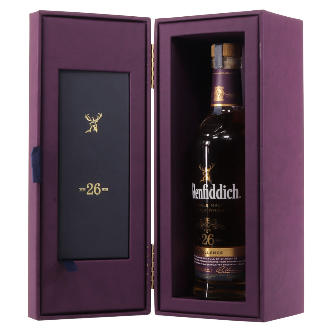 A whisky steeped in history, heritage and quality – Glenfiddich Excellence 26 Year Old was created to honour the distillery’s continuous line of family ownership since William Grant founded it in 1887. A rare single malt that has spent 26 years maturing in American ex-bourbon casks.