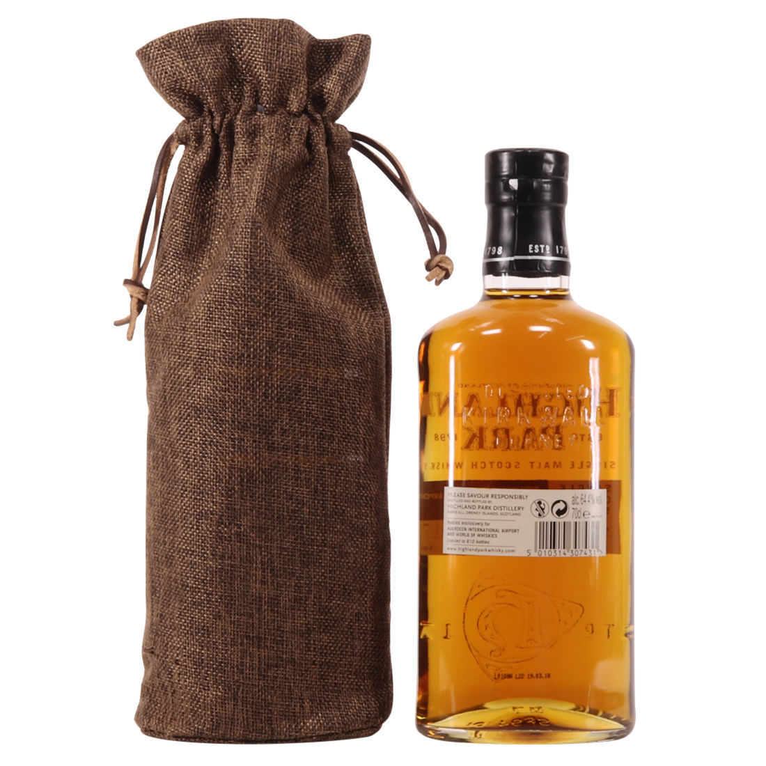 This Highland Park Single Cask Edition was bottled in 2018 exclusively for Aberdeen International Airport and World of Whiskies. With just 610 bottles available, the 12-year-old single malt whisky is drawn from an intriguing mix of American/Spanish oak cask and bottled at a cask strength 64.4% ABV.