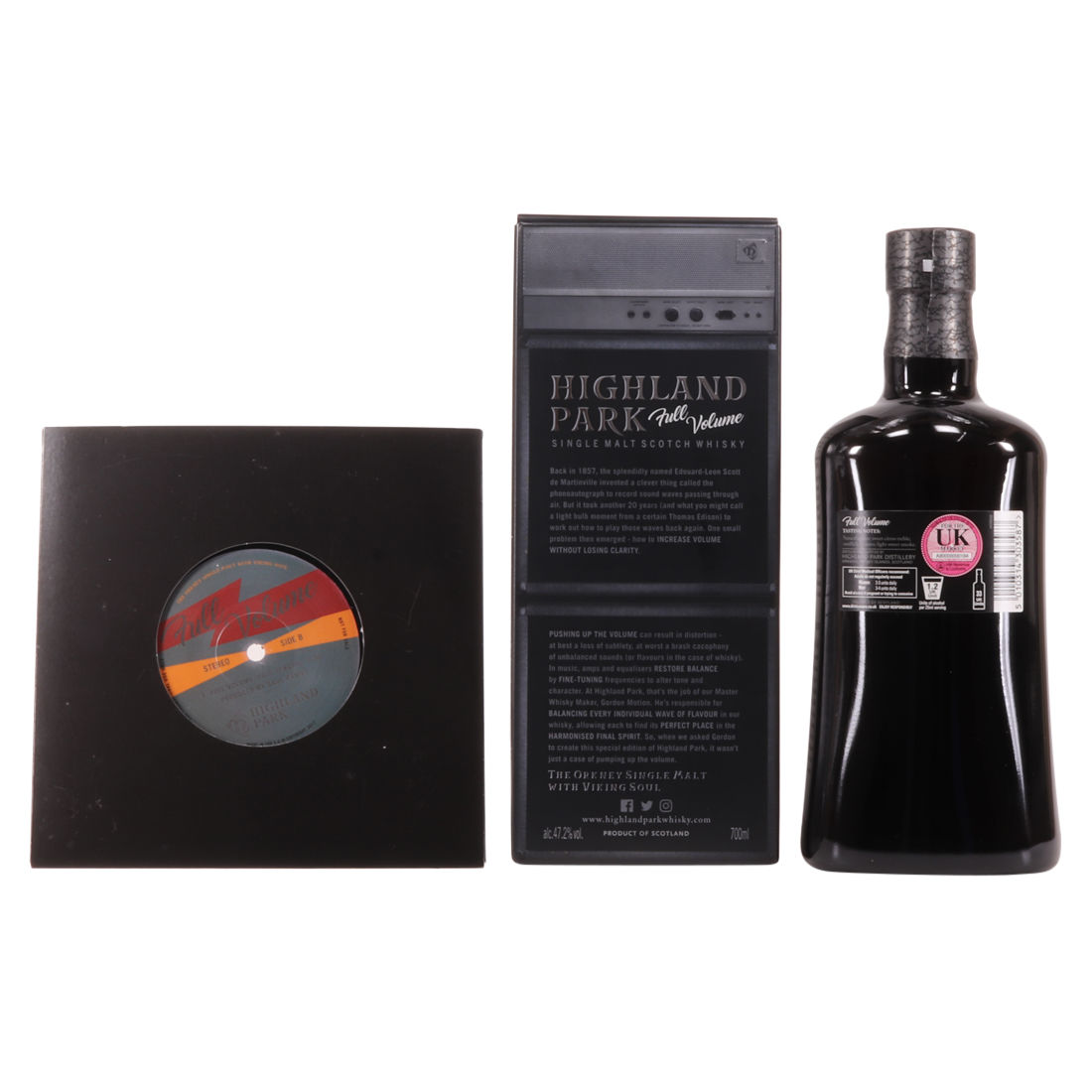 Full Volume by Highland Park was distilled in 1999 and bottled in 2017 from 481 casks. The single malt was matured exclusively in first-fill bourbon casks and was bottled at 47.2% ABV and comes presented in a themed presentation box resembling speaker.