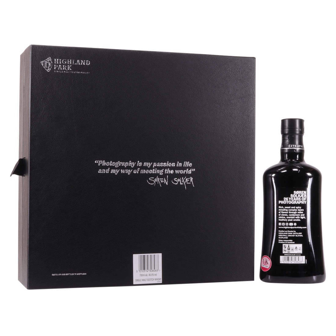 This single malt comes presented in a limited-edition black leather look case, with a book containing 250 photographs by Soren Solker & Highland Park.