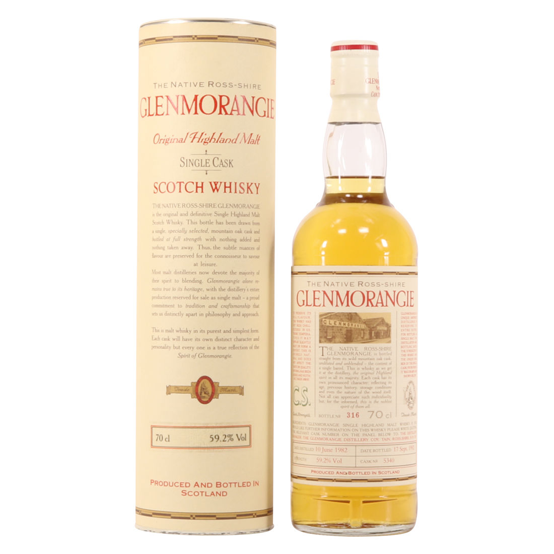 The native Ross-shire Glenmorangie 1982 vintage was bottled at natural cask strength at 10 years of age.