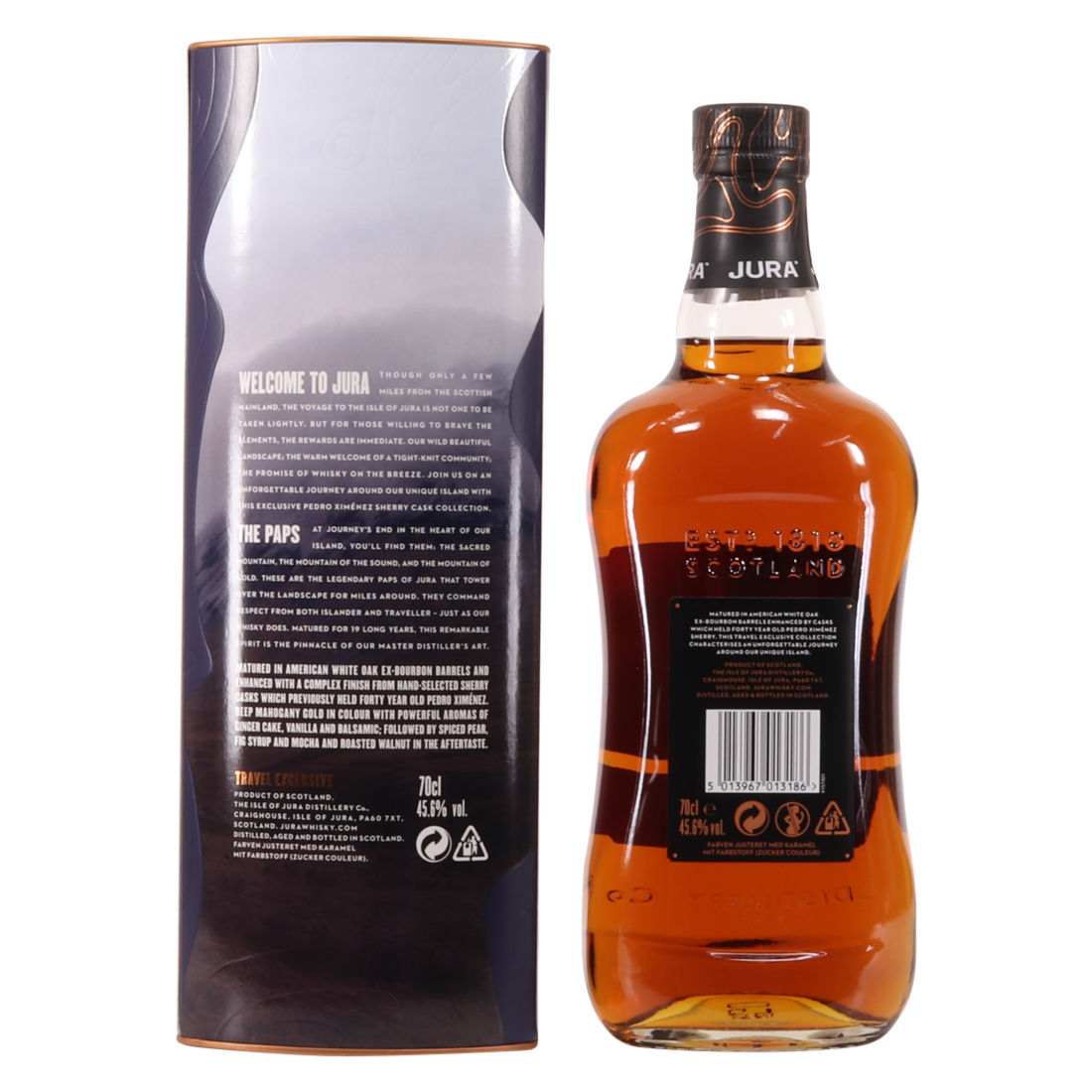 Whisky and these hills must be the two most famous things on this beautiful Island. This 19-year-old expression was matured in a combination of American white oak ex-bourbon barrels and finished casks that previously held 30-year-old PX sherry.