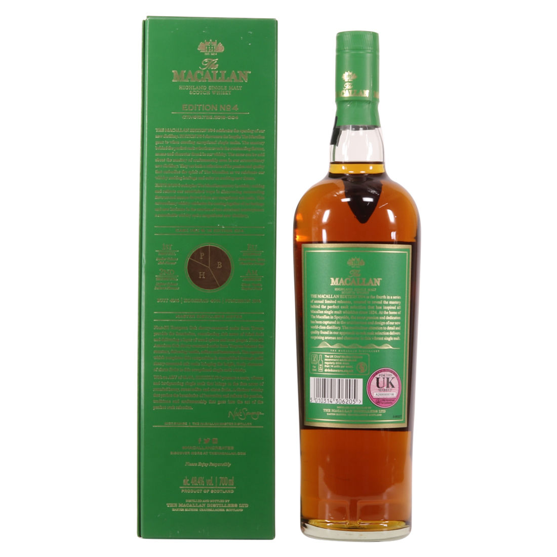 The fourth release in the Edition Series from The Macallan, this Speyside single malt is a celebration of the distillery's whisky making heritage, combining a unique selection of oak cask styles. Edition No.4 reflects the craftsmanship and pioneering design of the new Macallan distillery.