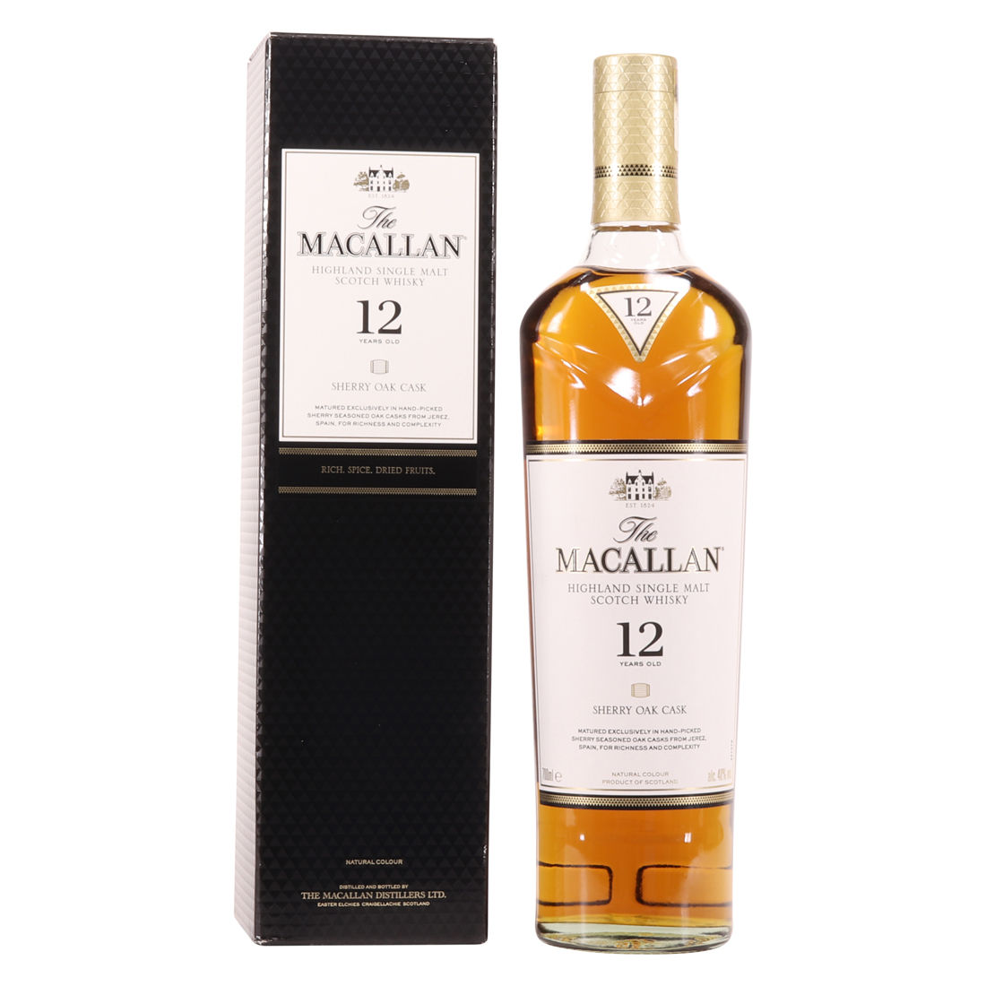 The Macallan 12 Year Old was exclusively matured in selected sherry oak casks from Jerez, Spain.