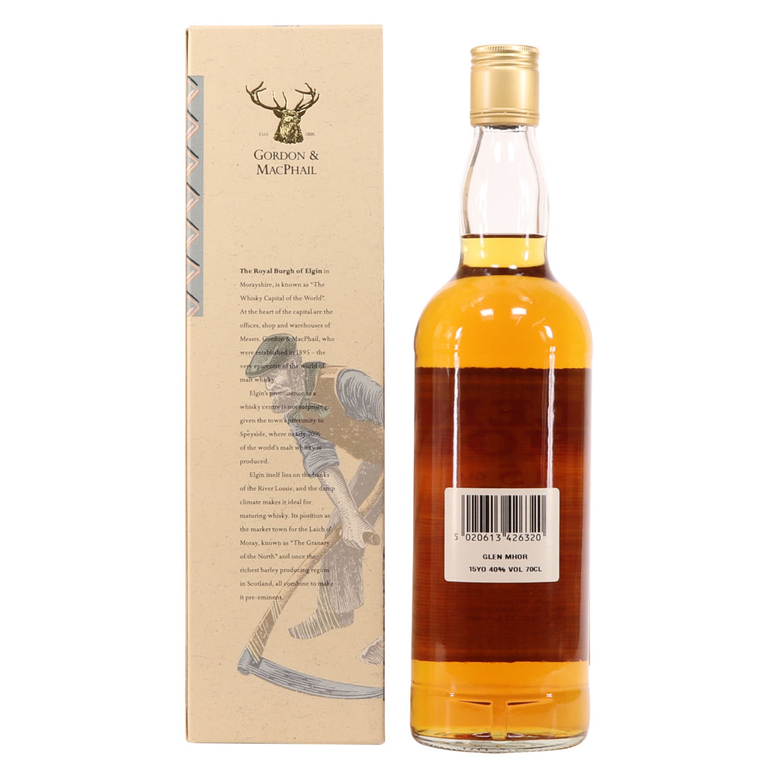 This is a rare, 15 year old Highland single malt from the now-closed Glen Mhor distillery, bottled by Gordon & MacPhail. This bottling is part of their Distillery Labels series.
