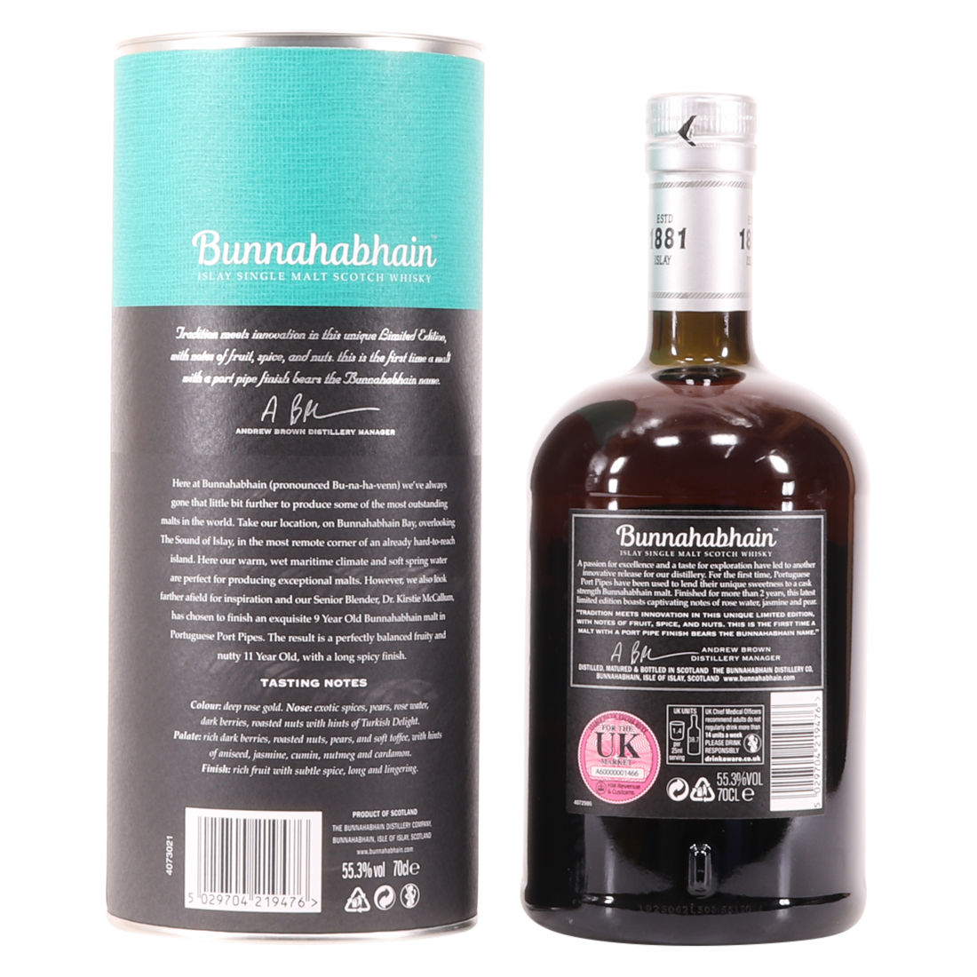 This special malt combined tradition with innovation at the Bunnahabhain distillery. Senior blender, Dr Kirstie MaCallum has chosen to finish an exquisite 9 Year Old malt in Portuguese Port Pipes.