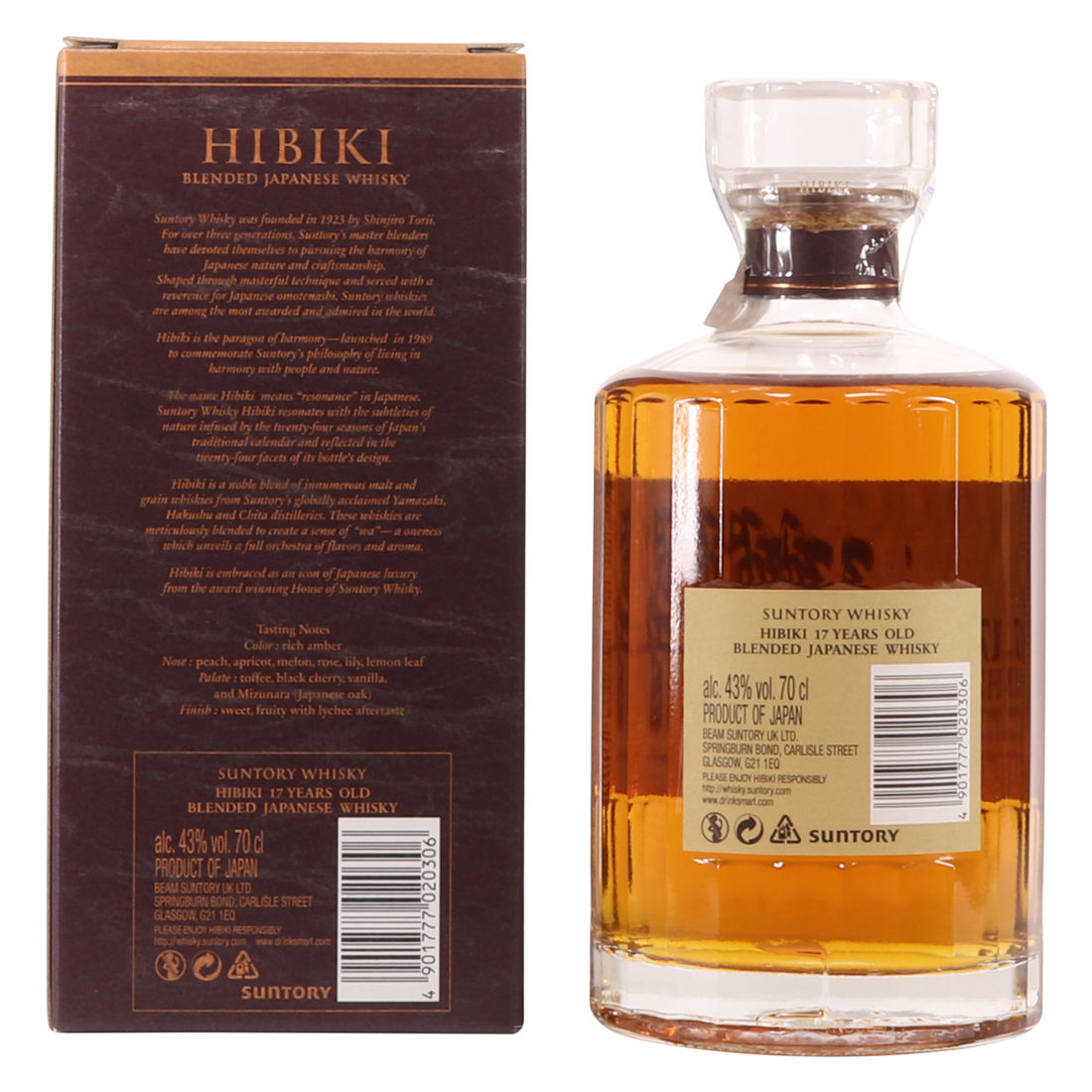 A world-famous Japanese blend, made with specially aged malt and grain whiskies from Suntory's distilleries. This popular blend was matured in mizunara casks for over seventeen years and has been awarded an "Editor's Choice" from Whisky Magazine.