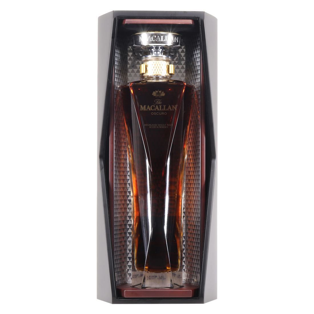 Macallan Oscuro, which is now discontinued is just a sherry lovers dream. It contains whiskies from 1987 to 1997. It was released at the high end of the 1824 series. Other bottles include the Gold, Amber, Sienna and Ruby.