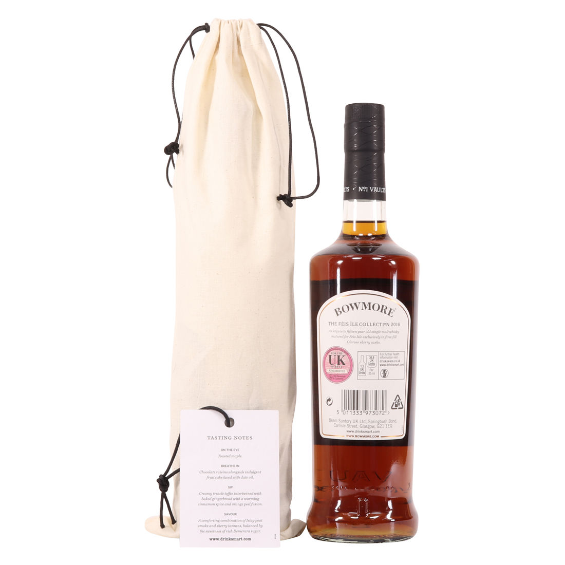 This is one of just 3000 bottles in this release by Bowmore which was sold exclusively at the distillery, during Fèis Ìle 2018. This single malt has been matured exclusively in first-fill Oloroso sherry casks for 15 years. It was bottled at the cask strength of 52.5% ABV.