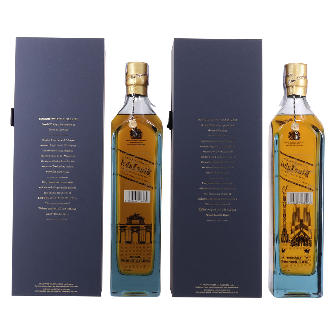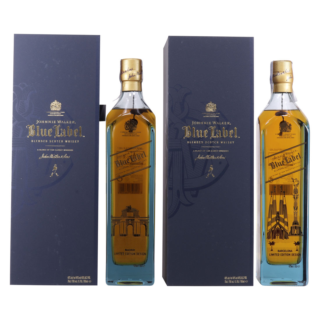 A twin pack of Johnnie Walker Blue label. Barcelona and Madrid limited editions.