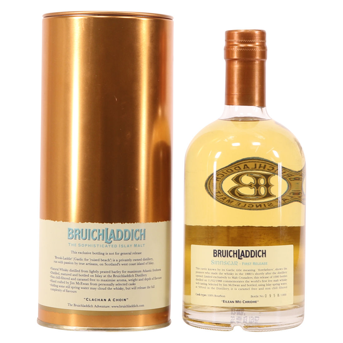 This special limited edition release from Bruichladdich that was bottled without an age statement at 50% ABV. It was distilled in 1988 and matured in 100% bourbon casks. 'Sinnsear' is Gaelic for 'Forefathers'. This is one of just 1,000 individually numbered bottles. This is a 50cl bottling.