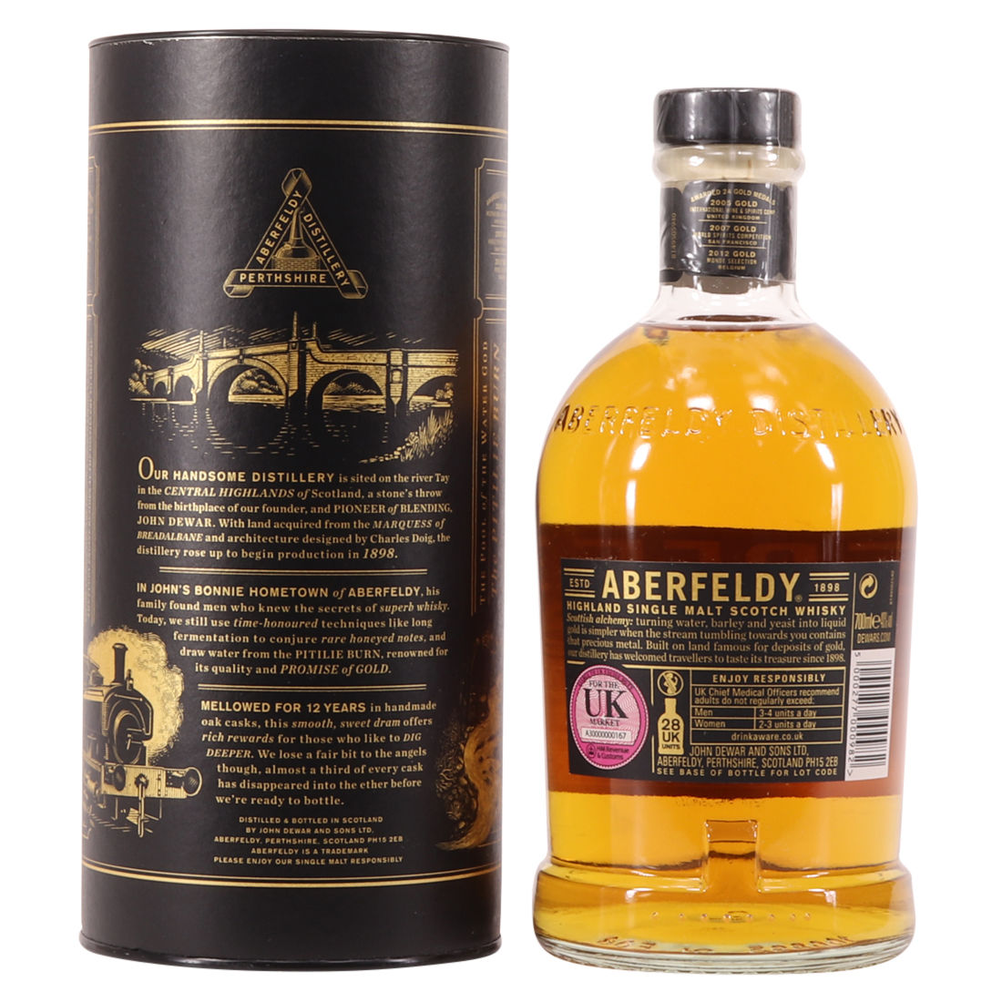 This is a lovely 12-year-old bottling from the Aberfeldy Distillery. It comes with a presentation tube. This 12 Year Old is an excellent introduction to this Highland distillery.