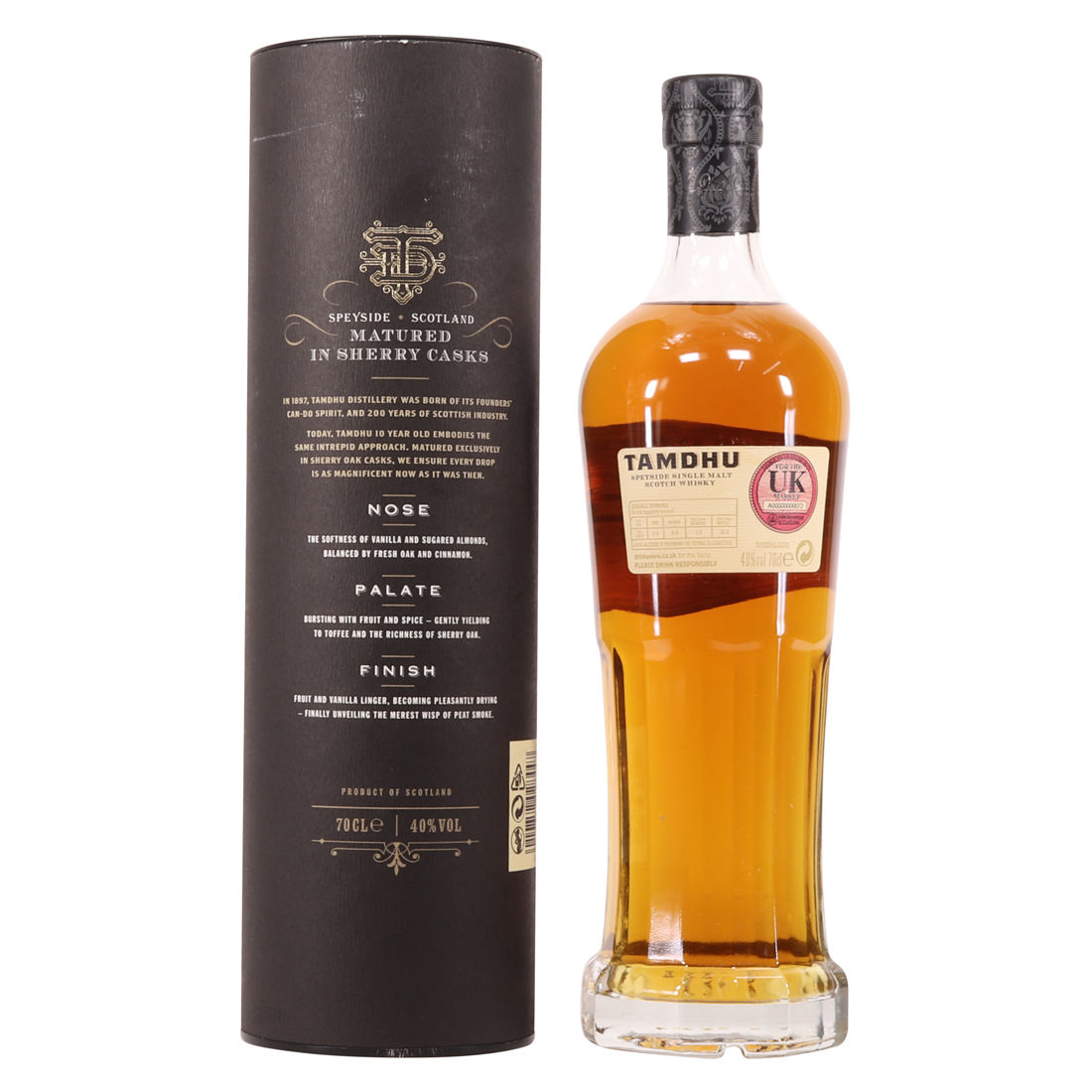 Tamdhu 10 Year Old is the first release in their maturing range of whiskies. Matured exclusively in sherry oak casks for 10 long years gives this Tamdhu bottling its glorious natural colour.