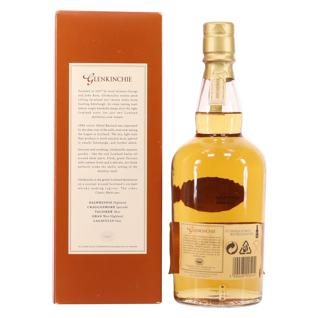 This 10 year old is an older style bottling from Glenkinchie Distillery, that comes presented in the famous orange box - with the classic malt stamp on the front of the box. The Glenkinchie 10 year old has since been replaced by the 12 year old.