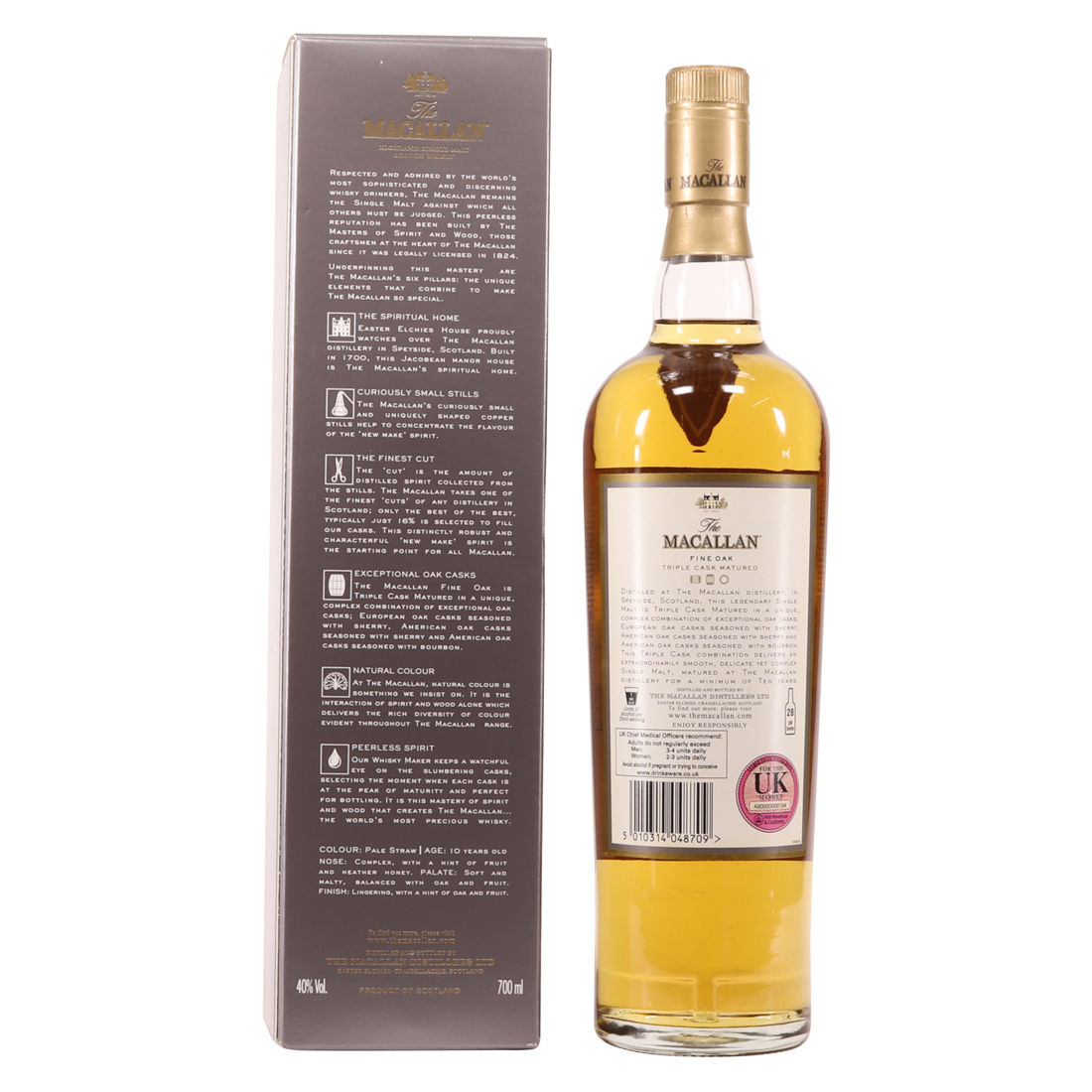 This 10 year old single malt is part of Macallan's Fine Oak, triple cask matured range. It has been matured for ten years in three oak cask types; Europen oak seasoned with sherry, American oak seasoned with sherry and American oak seasoned with bourbon. This bottling has been discontinued.