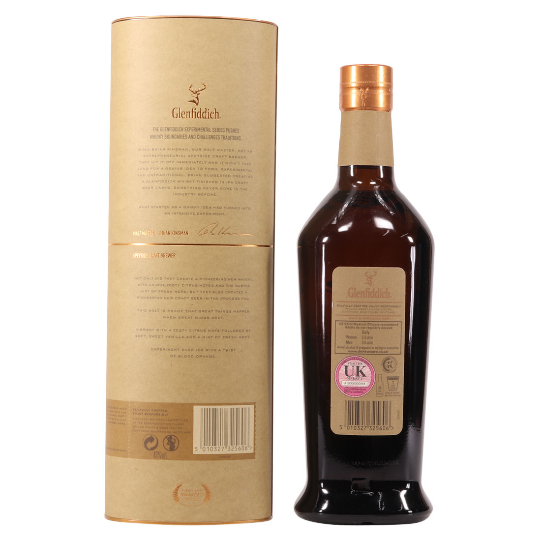 From the Speyside distillery, Glenfiddich, this is their Experimental Series. The single malt was finished in bespoke craft IPA barrels. This pioneering malt is imbued with unique zesty citrus notes and the subtle tang of fresh hops.