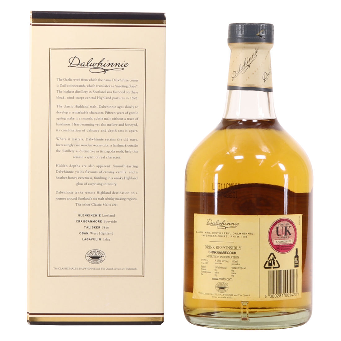This 15 year old from the Dalwhinnie distillery is part of Diageo's Classic Malts range. Jim Murray awarded this 15 year old 95 points in the Whisky Bible, recognising the quality of the dram for the price.