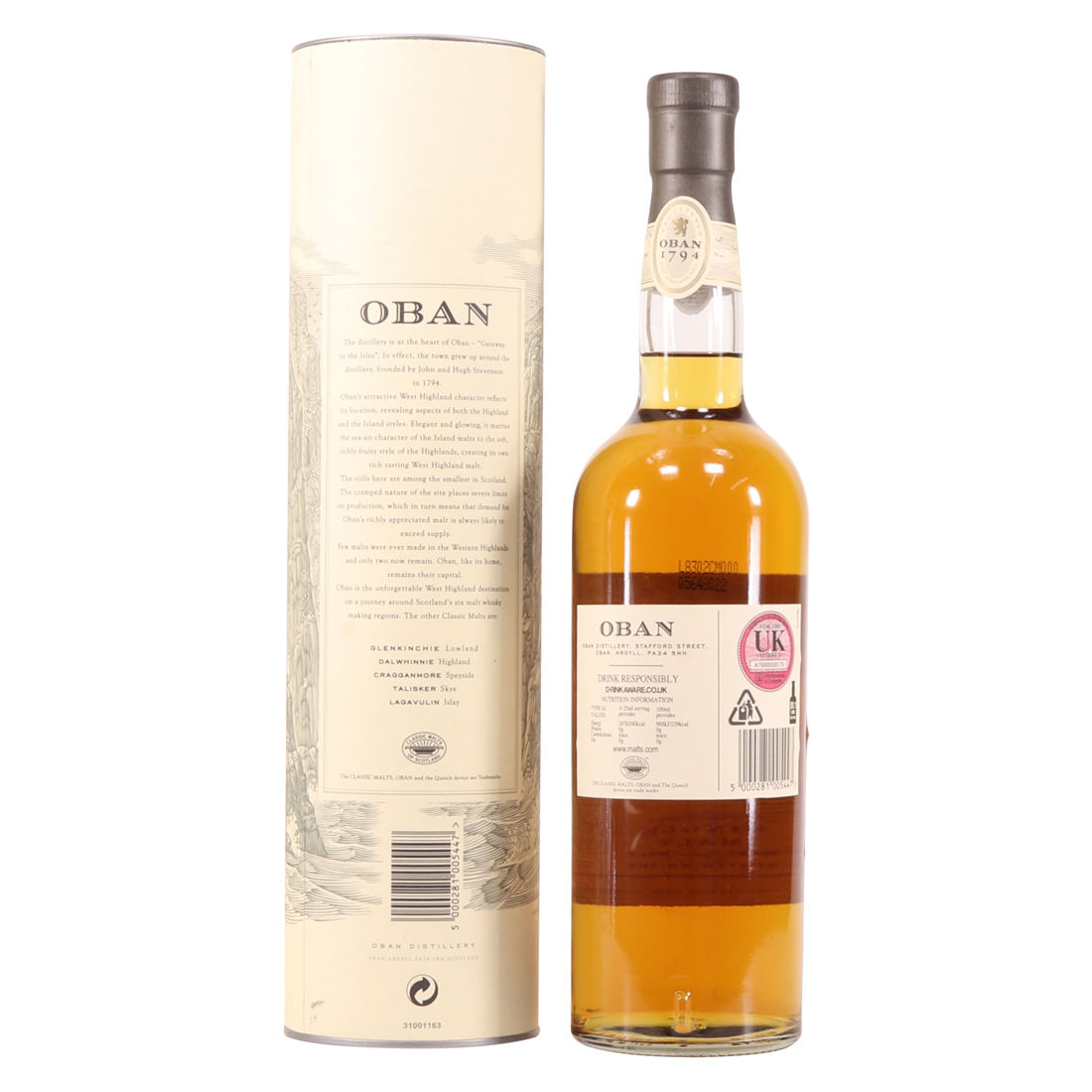 This is the Western Highland representative in Diageo's 'Classic Malt' series. Oban 14 year old single malt is a rich and fruity malt, with notes of heather and smoke. It an award-winning single malt, distilled close to the sea.