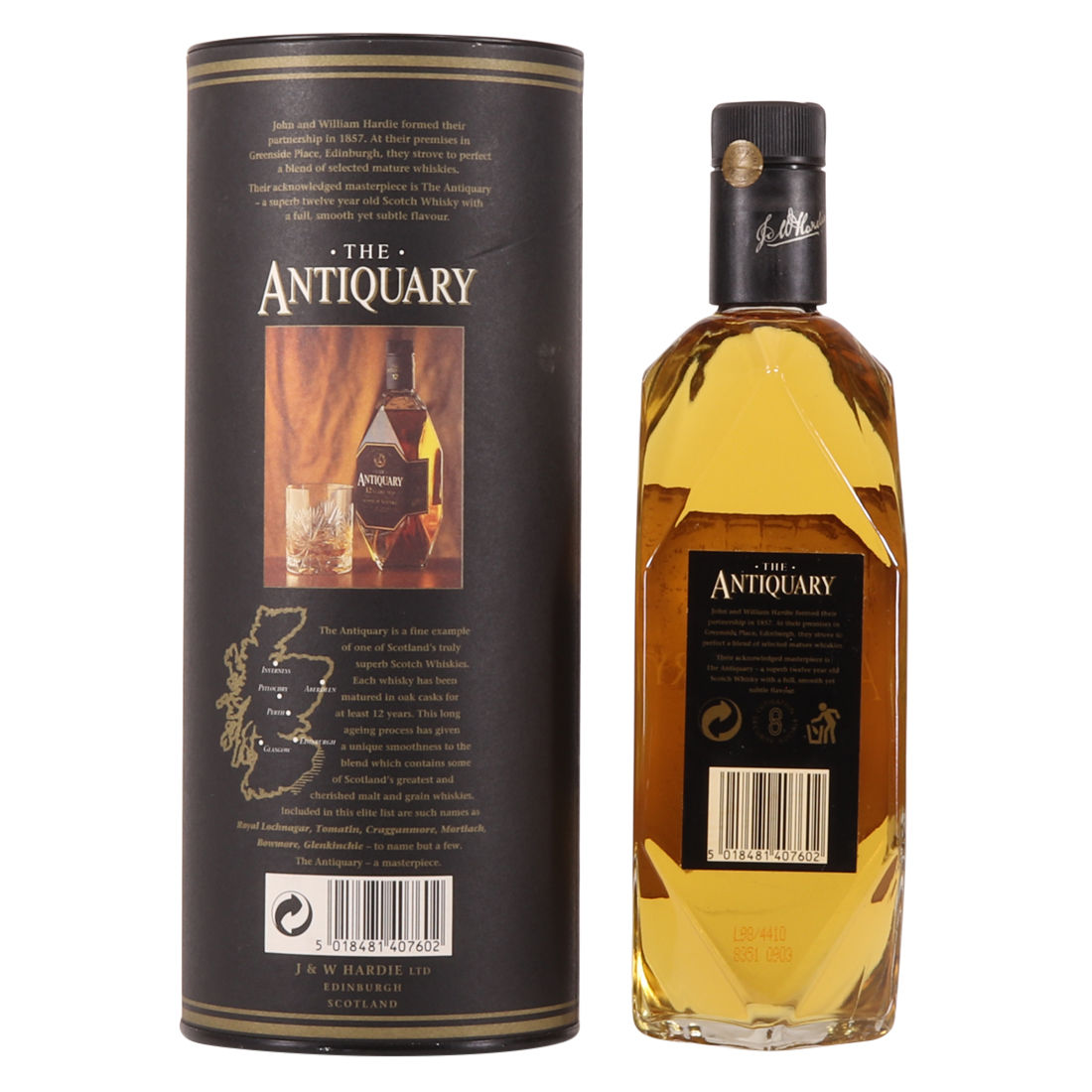 This bottling from Antiquary is a blend of some of Scotland's greatest 12-year-old malt and grain whiskies, including Royal Lochnagar, Tomatin, Cragganmore, Mortlach, Bowmore, Glenkinchie to name a few. Also, a quirky feature is that in the lid of this bottle box, there is a coaster that pops out!