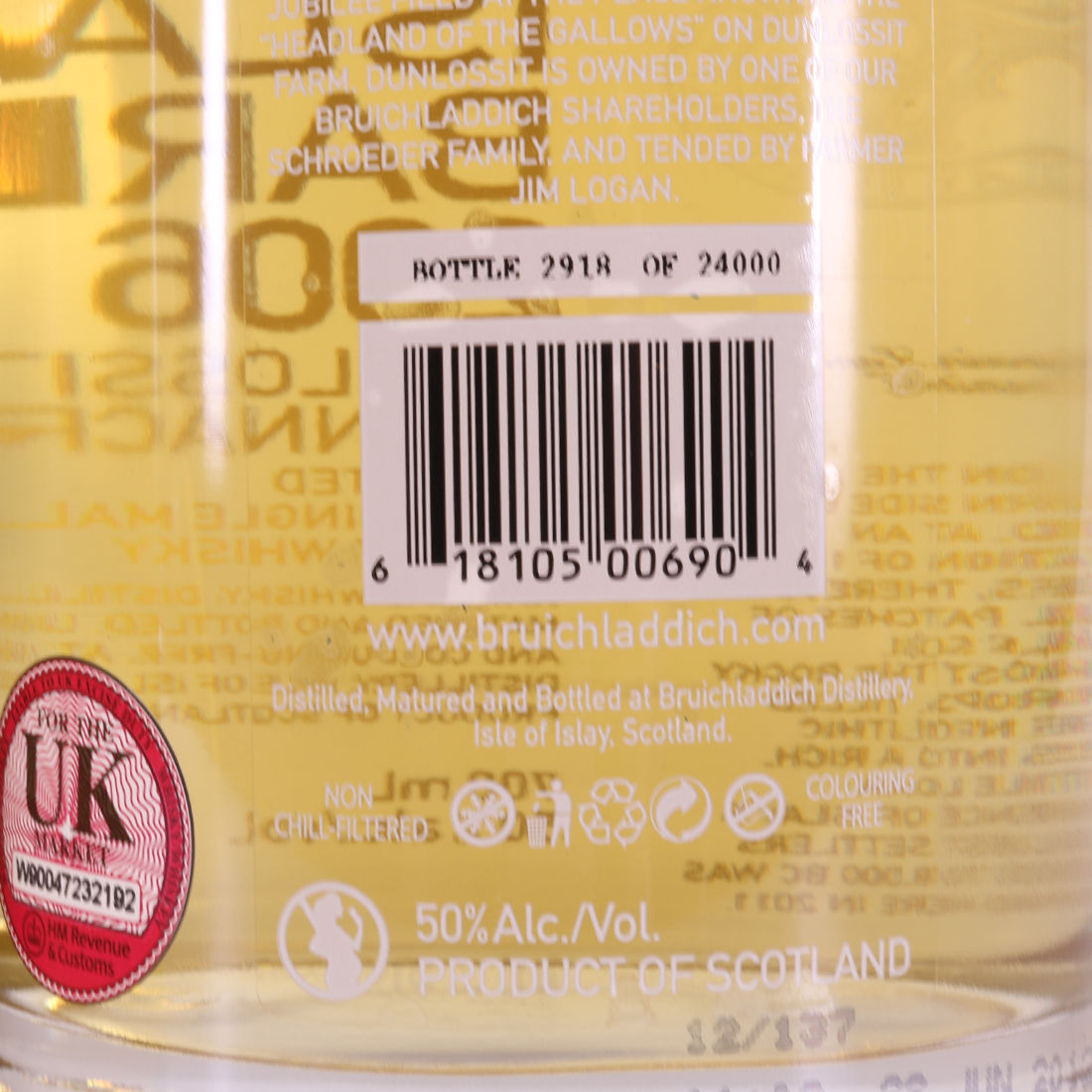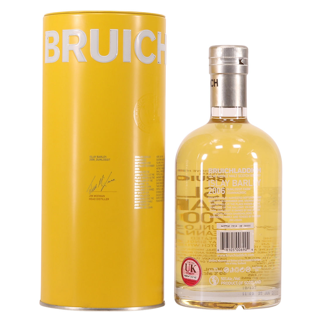 This bottling by Bruichladdich showcases the distillery's commitment to try and source as much barley as possible from Islay. The 2006 vintage of Bruichladdich Islay Barley comes from Chalice barley grown on Dunlossit Farm; harvested in September 2006 and distilled November 2006.