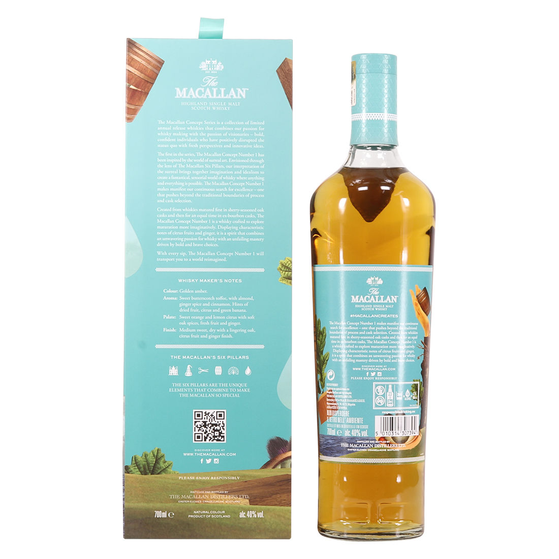 Number 1 is inspired by surrealist art - with the label depicting the Macallan Six Pillars in the style of surrealism - which is apparently echoed through the innovation of their slightly different maturation process in the production of this release.