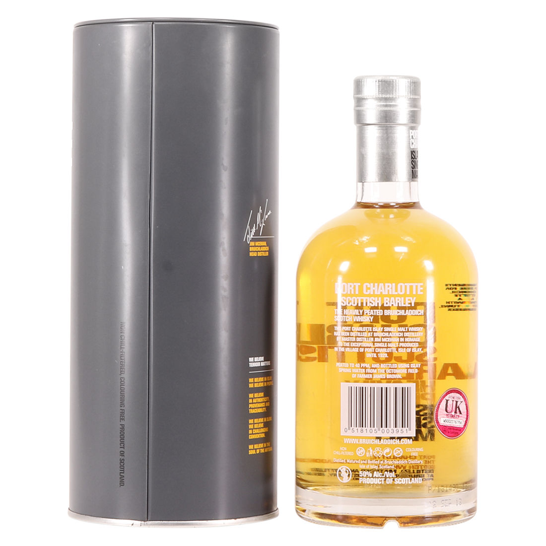 Peated to a heavyweight 40ppm, Port Charlotte Scottish Barley is a cuvee crafted from cask profiles originally selected by master distiller Jim McEwan. It has been trickle distilled using only 100% Scottish Barley then matured in the village of Port Charlotte, before being bottled at the distillery using Islay spring water. It is a dram full of depth and complexity; the flavourful peat & the smokey sweetness of the barley contrasts elegantly with the marine freshness of the spirit and the richness of toffee and vanilla.