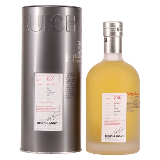 This is a 9 year old single malt from Bruichladdich, released as part of their Micro-Provenance Series. A single fresh bourbon cask (#060) was filled on the 1st of March 2006 and was then bottled in July 2015. Only 273 bottles were produced.