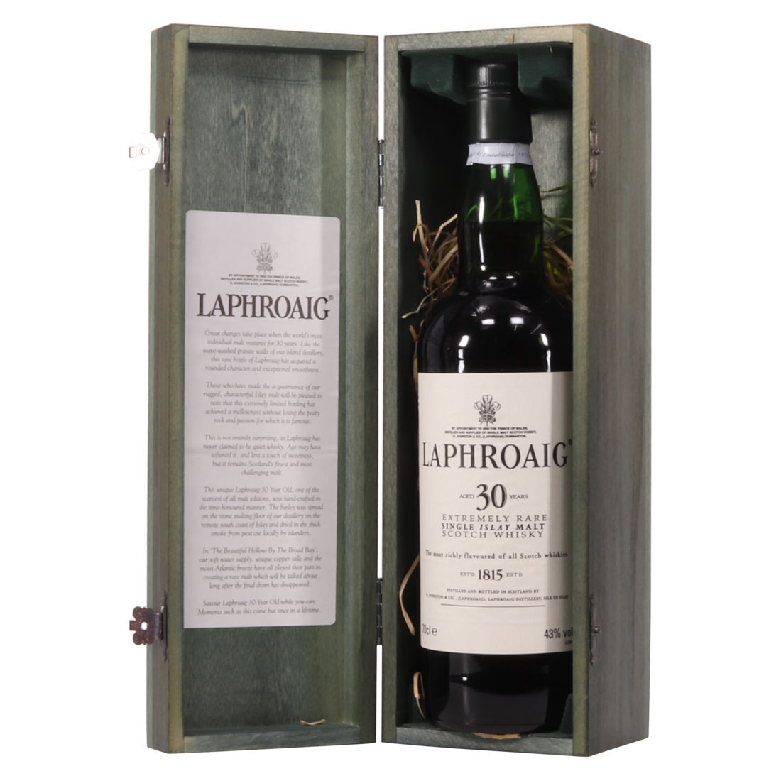 Originally released around the year 2000, this beautifully packaged Laphroig 30-year-old comes in a striking wooden presentation box. It is an Islay gem that is becoming rarer and rarer.