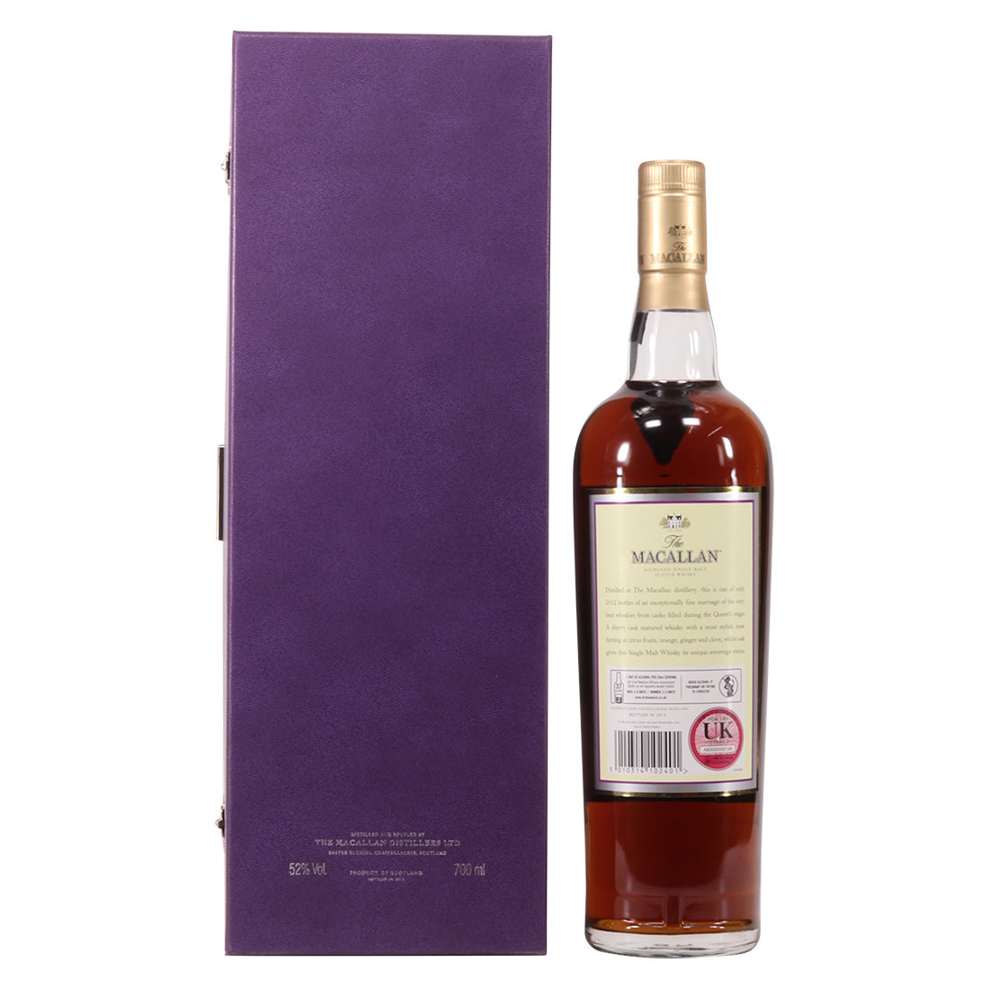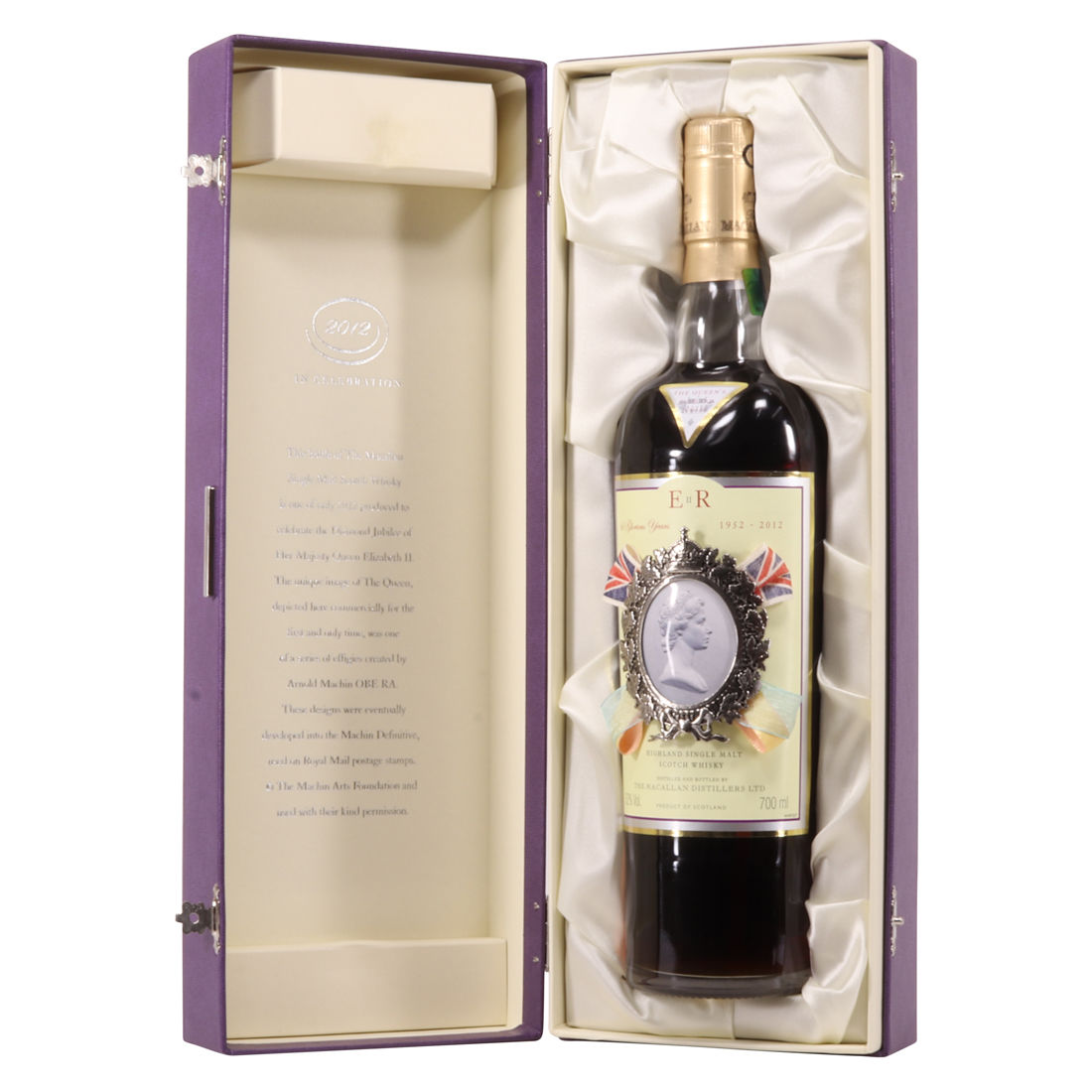 A highly desirable, limited-edition release from Macallan to commemorate the Golden Jubilee of Her Majesty Queen Elizabeth II (1952-2012). This is one of 2012 bottles. Drawn from its cask on the 8th of February 2012, by no coincidence the date of Her Majesty’s accession, this sherry cask-matured expression was bottled at 52% ABV. It is an instant classic and highly collectable.