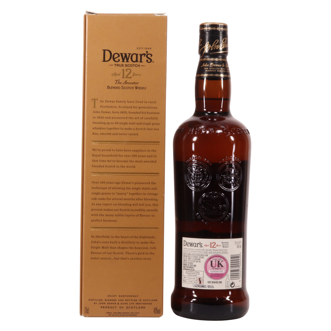 'Ancestor' is the successor of the classic 12-year-old blend from Dewars. It is is named double aged due to the additional 6-month maturation the whisky is given after the initial maturation and blending.